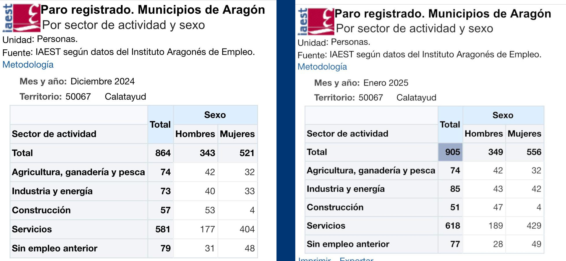 Según publica el Instituto Aragonés de Empleo, en diciembre del 2024 en Calatayud había registrados en la oficina de empleo 864 demandantes, tan sólo un mes después la cifra aumentaba a 905. Superando en medio punto los datos de hace un año.
