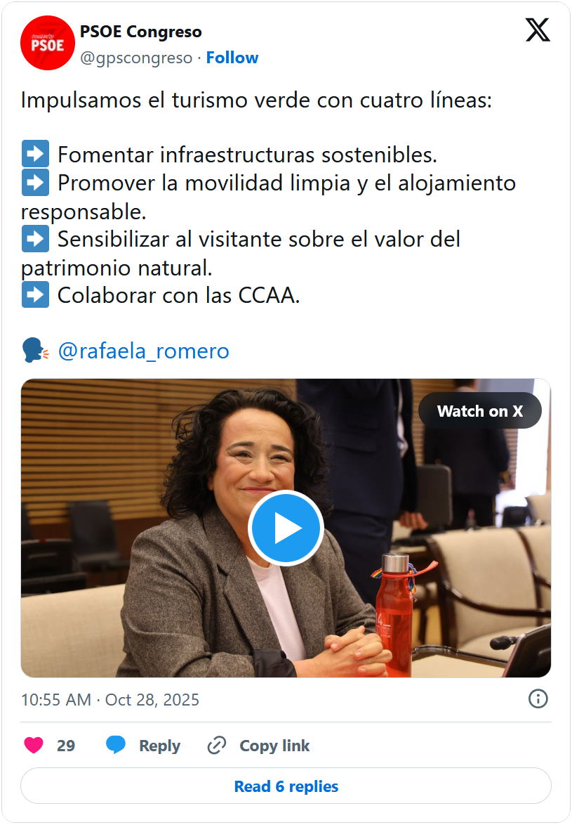 La iniciativa, defendida por la diputada socialista por Gipuzkoa, Rafaela Romero, se enmarca en la Estrategia de Turismo Sostenible 2030 y apuesta por impulsar el uso de infraestructuras como vías verdes y redes ciclistas seguras, fomentar el turismo responsable con alojamiento y transporte sostenible y ahondar en la sensibilización sobre los beneficios del turismo respetuoso con el patrimonio natural y cultural.