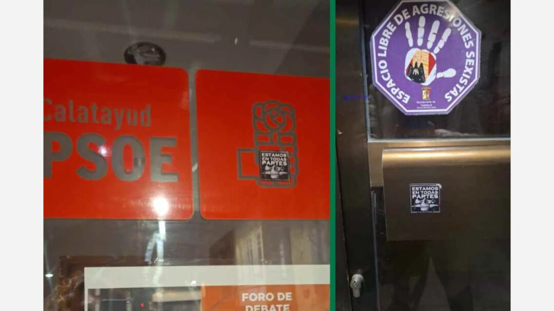 La sede del PSOE de Calatayud amanece con pegatinas de grupos fascistas tras el foro sobre inmigración con Luc André Diouf Fecha de la entrada 16 diciembre, 2025